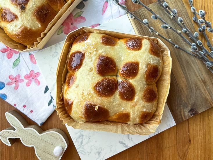 A tésztája nagyon hasonló a mi fonott kalácsunkhoz, foszlós, enyhén édes és vajas, ízlés szerint pedig tehetünk bele aszalványokat is. Jellegzetessége, hogy a felületére keresztet rajzolnak és a sütés után cukorsziruppal kenik le, hogy sokáig puha és szaftos maradjon. Ugye milyen jól hangzik?